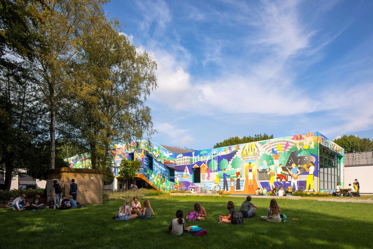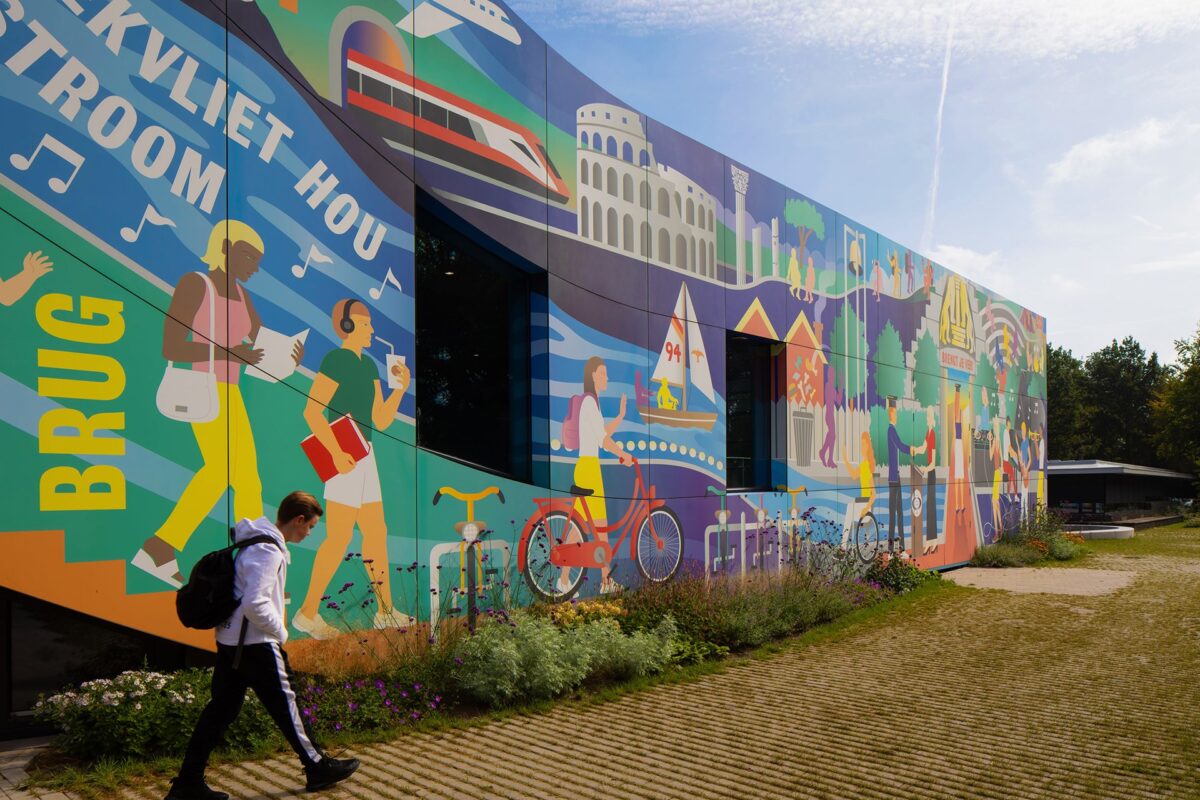 De renovatie van het bekende Gymnasium Beekvliet in Sint-Michielsgestel is voltooid. De school is uitgebreid zodat leerlingen en docenten op een logischer manier langs klaslokalen en andere ruimtes kunnen circuleren, terwijl een hemelsblauwe aula het nieuwe hart van de school vormt. De gevel van de uitbreiding is verrijkt met een panoramisch werk van beeldend kunstenaar Ian Kirkpatrick. De muurschilderingen verweven de verhalen van oud-leerlingen, voorbijgangers en bestuursleden met beelden van de toekomst.